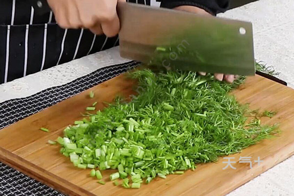 1、茴香洗净,切碎;