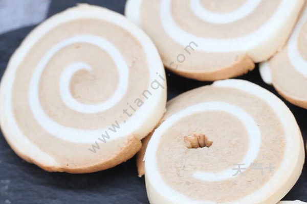 零食猫耳朵的做法 自制猫耳朵零食先白糖、盐、水和植物油混合均匀。红糖、水和植物油混合均匀。一部分低筋面粉,加入白糖水,揉成面团。另一部分低筋面粉加红糖水,揉成面团。白糖面团和红糖面团擀薄,红面团放在白面团上,卷起,冷冻1小时。面团切薄片,放入烤盘,烤箱预热,烤15-20分钟。