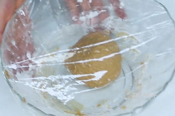 3、取一部分低筋面粉,加入白糖水,揉成面团,静置30分钟;