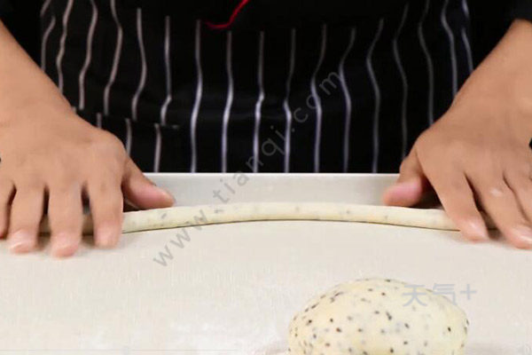1、高筋面粉中加入鸡蛋、盐和芝麻,混合均匀,揉成光滑面团,醒发10分钟,然后盖上湿毛巾,再醒30分钟;