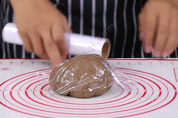 2、将面团用保鲜袋包住,放入冰箱静置半小时;