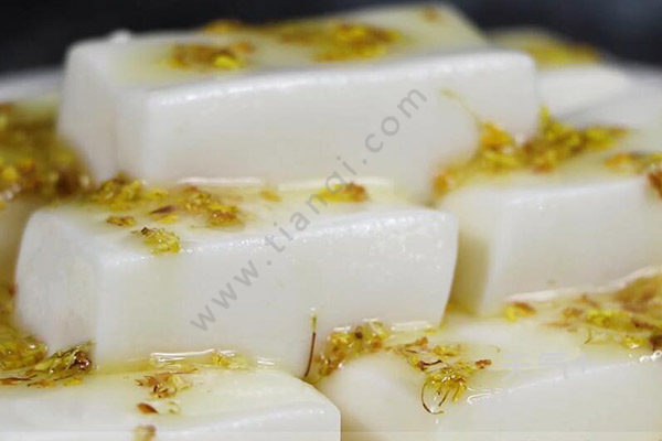 5、取出脱模切块,淋上一些糖桂花。