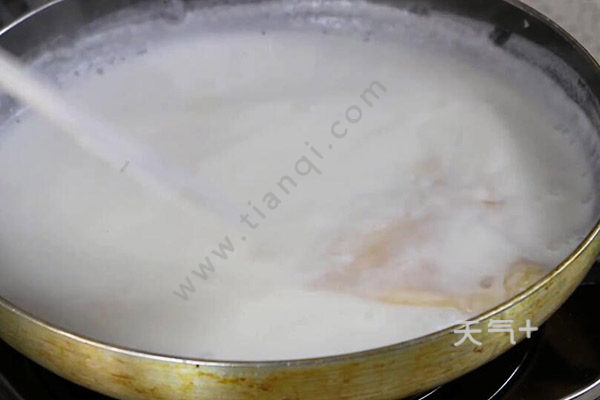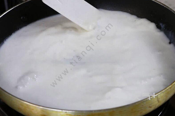 1、奶粉加入适量开水搅拌一下,放入锅里煮,加入椰浆和适量水,放适量白砂糖,拌至糖融化;