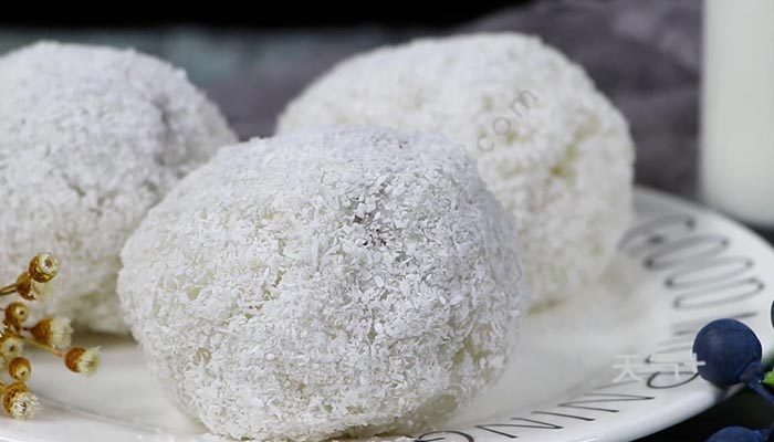 将糯米提前放入清水中泡6个小时左右。将糯米放进蒸锅中,大火开始蒸,直到糯米蒸熟。蒸熟的糯米盖上保鲜膜,自然放凉。糯米中包入豆沙和蜜豆,再裹上椰丝即可。