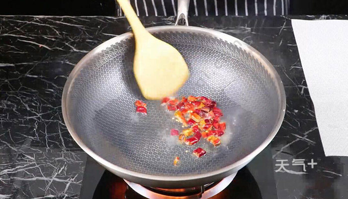5、锅中倒适量油,放入干辣椒壳,炸出辣椒油;