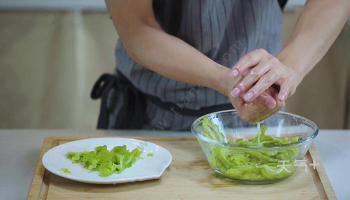 苦瓜腌制一下,挤出苦瓜汁之后,能去除苦味。