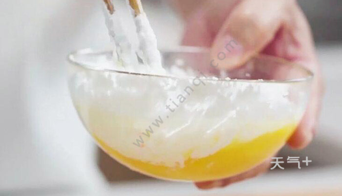 3、鸡蛋打散,然后加入淀粉,调成蛋糊;