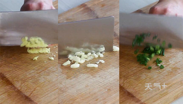 3、姜切末,蒜切末,葱切葱花;