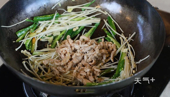 金针菇炒里脊肉的做法: