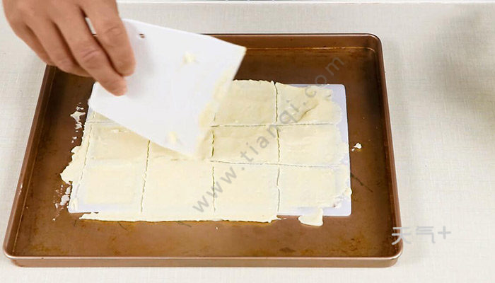4、将面糊刮平,划出条纹分出饼干;