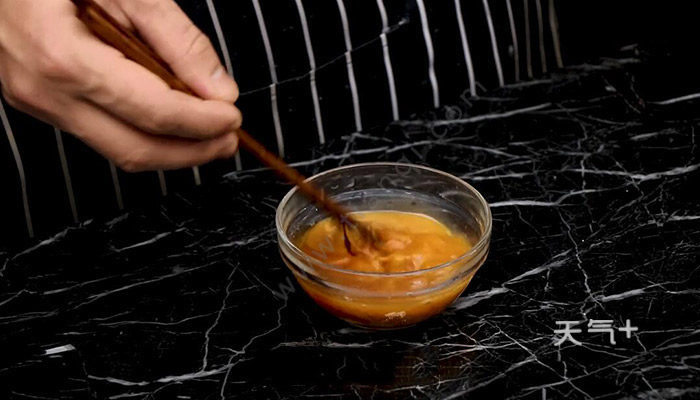 2、碗里倒入清水、白糖、白醋、生抽、盐、番茄酱、土豆淀粉,搅拌成料汁;