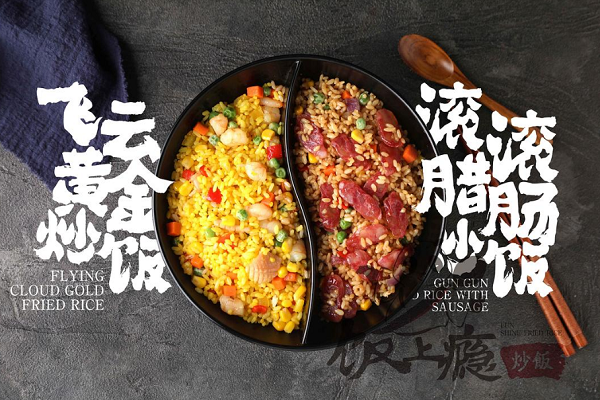 1. 饭上瘾炒饭,是一家汇聚多元化经营系列的美食品牌,采用复合式经营的模式,推出了特色的中式快餐,还有各种的小吃和饮品等,以炒饭作为主打,现炒的方式,赢得消费者的喜爱。