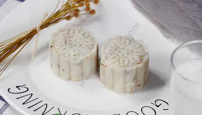 5、最后用月饼模将淮山泥压出花纹造型即可。自制淮山糕的方法 淮山糕的做法
