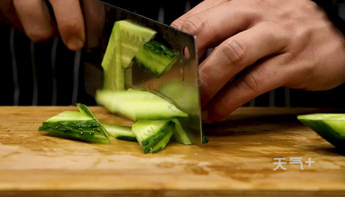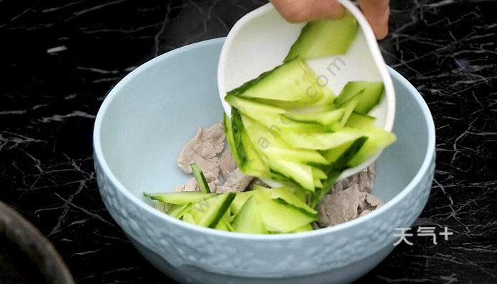 3、锅内加清水,加热至微沸时下入里脊片,煮至八成熟后捞出,放入黄瓜片;
