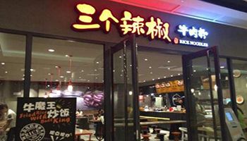 三个辣椒也是上班族的食堂之一。虽然价格偏贵,但值得一去再去,一般的单品米粉,便宜的18元左右,贵的也不超过25元。