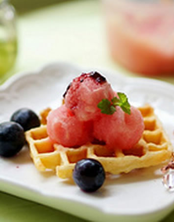辅料:蓝莓果酱1小勺、华夫饼3块