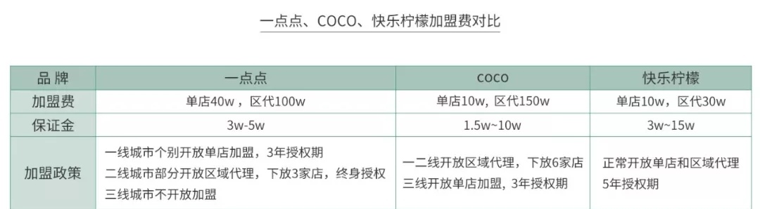 下面以当下比价热门的茶饮品牌一点点、COCO和快乐柠檬为例,一起来看看它们的盈利水平、加盟政策和优劣势。