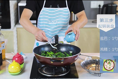 5、空心菜超软后,放入盐、鸡精调味即可出锅