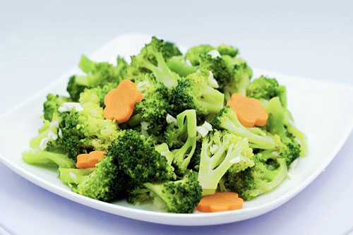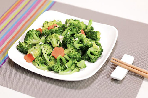西兰花洗净切成小朵,大蒜切末;水烧开,放西兰花焯水半分钟捞出;油锅烧至7成热,放蒜末炒香,放西兰花翻炒均匀,放盐、鸡精拌匀即可。