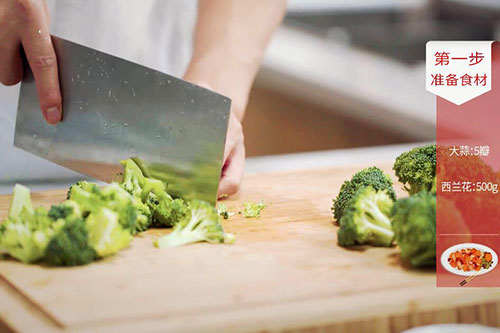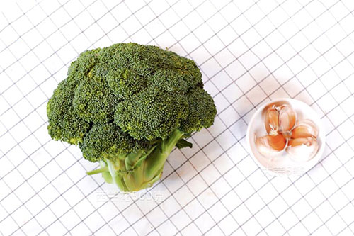 1.西兰花洗净,切成小朵,大蒜5瓣切末;