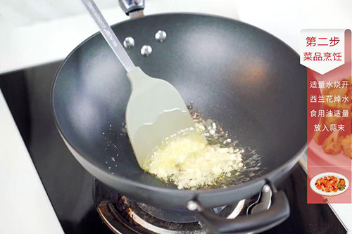 3.锅中放入适量油,油温烧至7成热,放入蒜末炒香;
