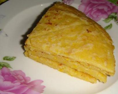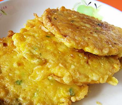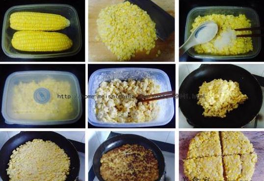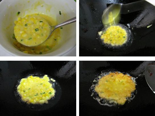 9.香甜玉米饼两面煎黄即可,味道鲜香,颜色漂亮。