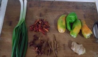6、10来分钟的大火炖就差不多,现在就可以用东西盛起来,就可以用燃料炉子炖了,最后放入青椒和大葱,一份香气喷喷的鸭肉就做好了