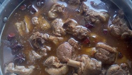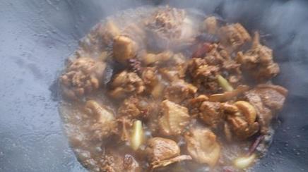 5、鸭肉炒的擦不多了就可以放水了,放入水后,让鸭肉炖一会,让鸭肉更好的入味,口感更好