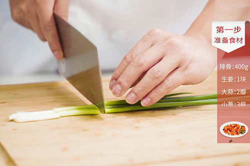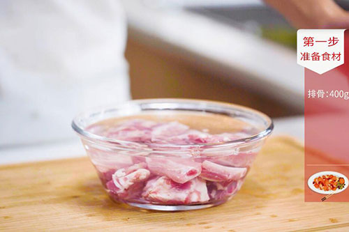 1.排骨切成长段,放入清水中浸泡10分钟;