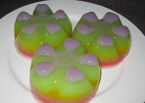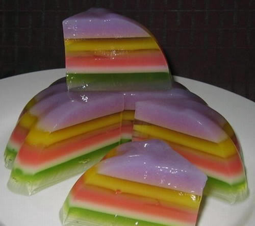 没有什么能比这种五颜六色的果冻更吸引小孩子的了。各种水果味的果冻可以按你自己的喜好随意搭配。每包果冻粉为85克。彩虹果冻的做法揭秘:彩虹果冻简单易做方法分享