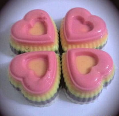 5、一层一层做,一次只做一种颜色,凝固后再做另一颜色,冻成果冻状后取出,直至差不多满杯就完成啦!