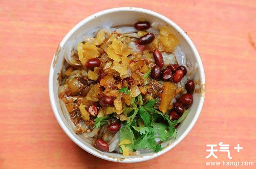 嗦上一口粉条冰凉爽滑、细腻可口,嘴里满是猫鱼混着大蒜水的味道回味无穷,可谓是闻起来臭吃起来香。夏天刮凉粉和冰豆花是绝配,纯手工的豆花入口即化,再来一口滑嫩的凉粉,清爽可口、非常解暑。