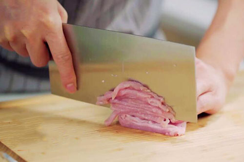 2.里脊肉切丝,备用;