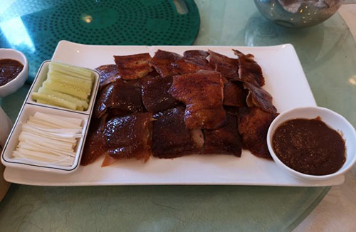 特色菜:片皮鸭,三文鱼,清酒鹅肝,三色上汤虾饺
