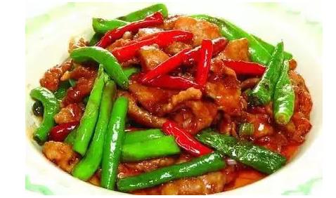 4、炒至肉变色时,加入辣椒继续翻炒,最后根据口味,撒入少许盐即可。