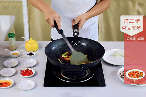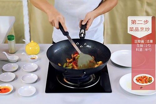 7.加入生抽1勺、料酒半勺、盐半勺、鸡精半勺、胡椒粉1克、白糖1勺翻炒半分钟即可。
