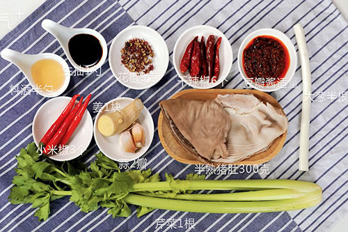 半熟猪肚300克,芹菜1根;