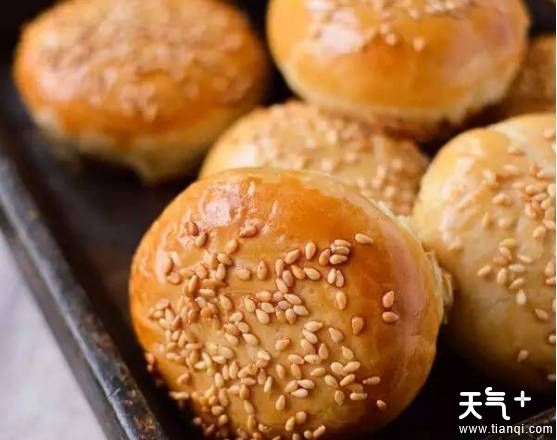 14、烤箱预热至400度,将烤架置于烤箱中层。月饼面团表面涂上蛋液,撒上芝麻。
