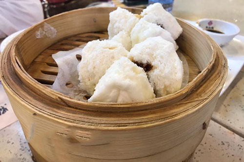 叉烧包是广东早茶中必不可少的一种,一直是广东人的最爱,也是比较大众化的点心,叉烧包的包皮采用的是酵母发酵法,吃起来包子的皮比较松软,叉烧包的馅料也很讲究,就是把叉烧切成丝,再调上糊状的芡,蒸熟即可,叉烧包的特点就是表皮松软,馅香有汁。