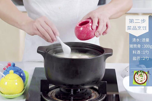 8.大火煮开后转小火煲2小时,加入盐2勺、鸡精1勺拌匀即可盛出享用。