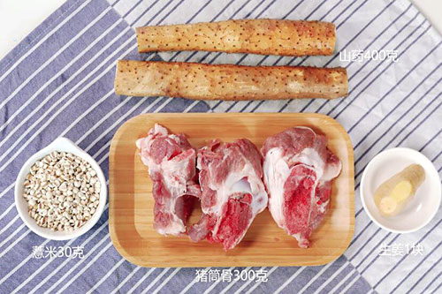 猪筒骨300克,山药400克,薏米30克;