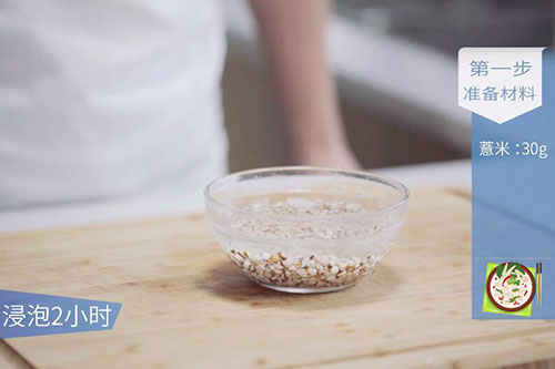 1.猪筒骨洗净,放入清水中浸泡30分钟,薏米用清水浸泡2小时;