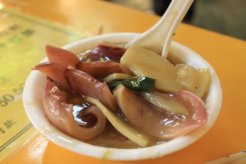 生炒花枝其实就是将花枝、笋片和红萝卜一起炒,这道小吃做法非常简单,但是口味很有特色。除了炒之外,还需要用到太白粉水勾芡,加上醋和糖进行调味,制作出来的小吃酸甜可口,汤汁粘稠,很有特色的搭配。