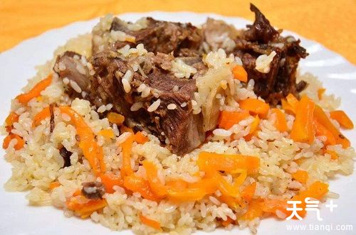 抓饭,维吾尔语称“波劳”,是新疆维吾尔、乌兹别克等民族人民喜爱的一种饭食,多净手掇食,故汉语称为“抓饭”。抓饭的种类很多,花色品种十分丰富,一般有肉抓饭和素抓饭之分。不过维吾尔族人最讲究的抓饭要算“阿西曼吐”,也就是包子抓饭,即在每碗抓饭里放上五、六个薄皮的肉馅包子,抓饭和薄皮包子都是维吾尔族的上等饭,把这两者合在一起,真是锦上添花。油亮生辉,香气四溢,味道可口,甚受欢迎。是一种富有营养、别具风味的饭食。有人给抓饭起了个外号,叫“十全大补饭”。远足来新疆的客人们,别失去尝一尝新疆抓饭的机会!
