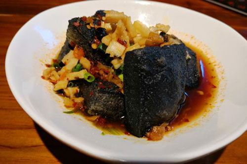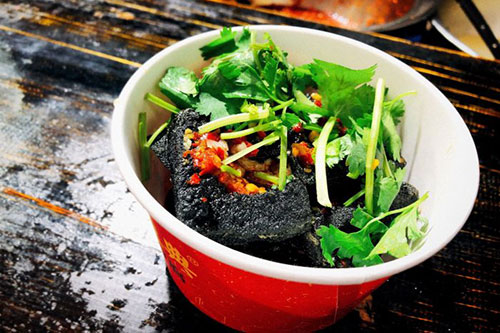 黑色经典臭豆腐据说是长沙最好吃的臭豆腐,看来还是很值得品尝的,他家的臭豆腐黑黑的,闻起来臭臭的,经过油炸,外焦里嫩,撒上蒜蓉、香菜,配上湖南特色剁辣椒,味道香辣可口,趁热一口咬下去,浓浓的豆腐乳汁化在舌尖,辣椒酱汁渗入其间,满嘴留香。黑色经典臭豆腐店面不大,但是人气相当高。