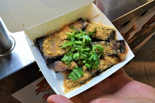 猪血糕很多人都听说过,也被叫做米血糕,是台湾特色油炸小吃,猪血糕就是用猪血和糯米制作而成。将糯米和猪血一起蒸熟,让它成为固状,有多种吃法,一是直接加上酱油膏、辣椒酱配上香菜一起吃,二是油炸着吃,很多卖台湾小吃的小摊上经常都可以看到,吃之前切块,第三种吃法就是放进关东煮里面,台湾便利店经常可以买到。