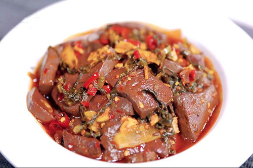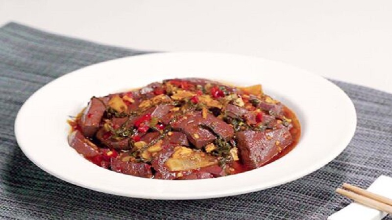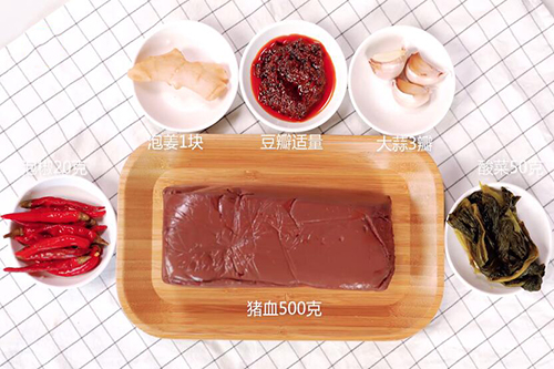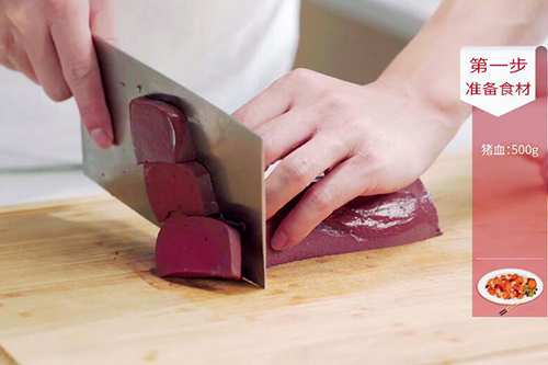 猪血也叫血豆腐,但广东习惯称为猪红,吉庆很多。猪红是非常廉价的健康食品,它的蛋白质、铁、锌、钴等含量很高,而脂肪含量则很低,因此有增强体质、补血养颜、防止高血脂、延缓衰老等的功效。