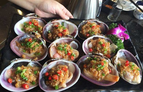 丹东的黄蚬子是很有名的,很多的餐厅都有,黄蚬子的做法很多样,可以白煮,清炒,炝拌,在众多的做法中,炭火烧烤是很受欢迎的一种,很多人吃。将吐尽沙的黄蚬子房子啊炭火上烤,热腾腾的水汽,黄蚬子会慢慢张开,用筷子把蚬肉夹起来沾上酱汁就可以吃了,蚬子肉肥大多汁鲜美甘甜,美妙无比。