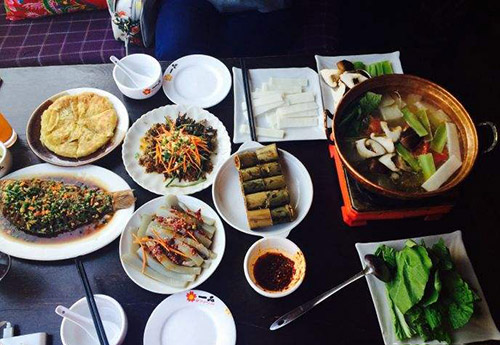 推荐菜品:黑山羊火锅、爽口牦牛肉、纳西烤肉、纳西米肠,纳西烤鱼