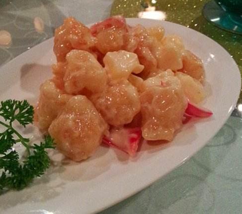 3.锅内加水烧开,放入虾球煮5分钟至熟,捞出放于盘中,豌豆苗氽熟,围于虾球四周。